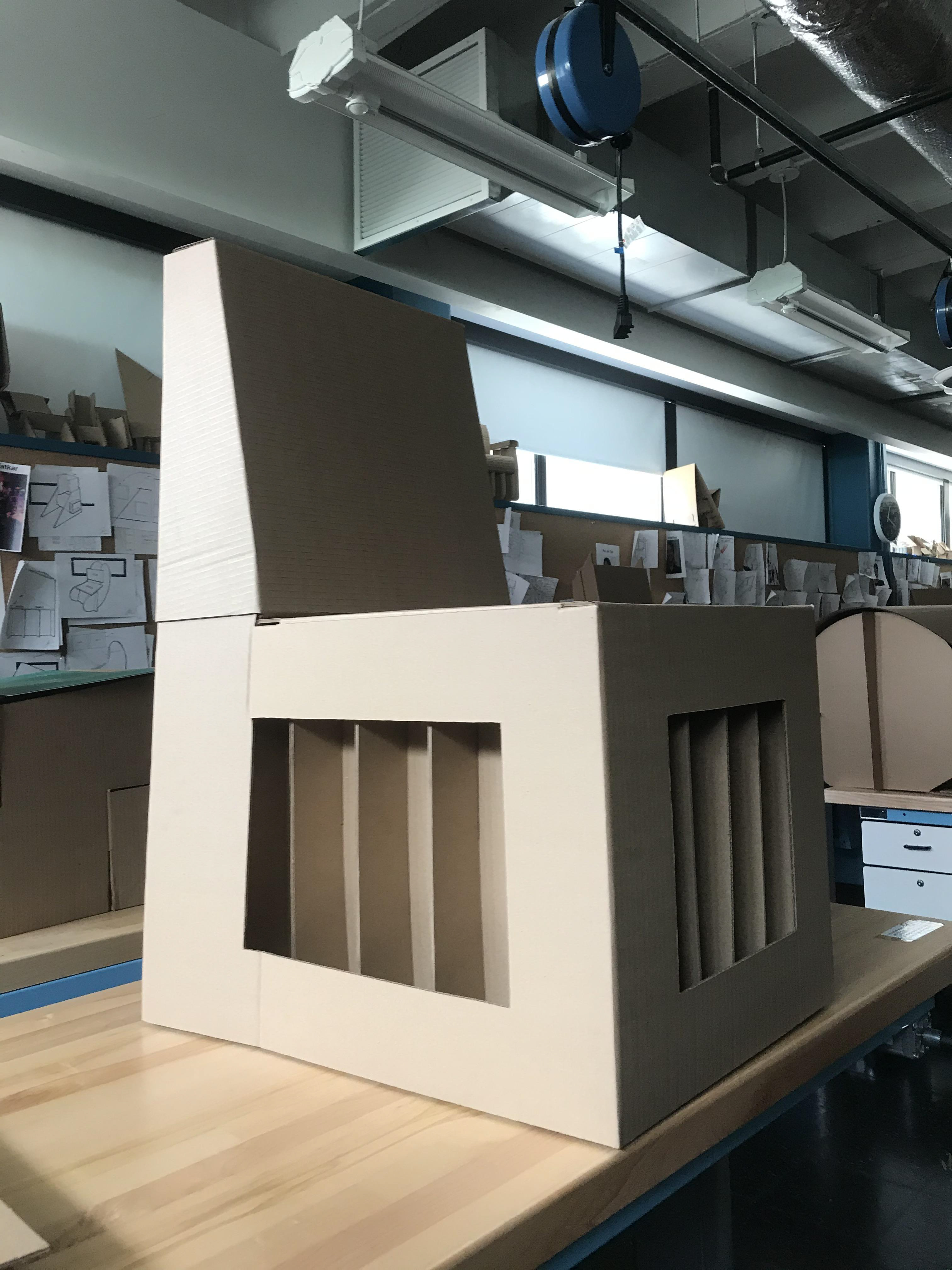 Create a functional and creative chair design from two sheets of 4'8' single ply cardboard that can withstand the forcesĀ of human use.